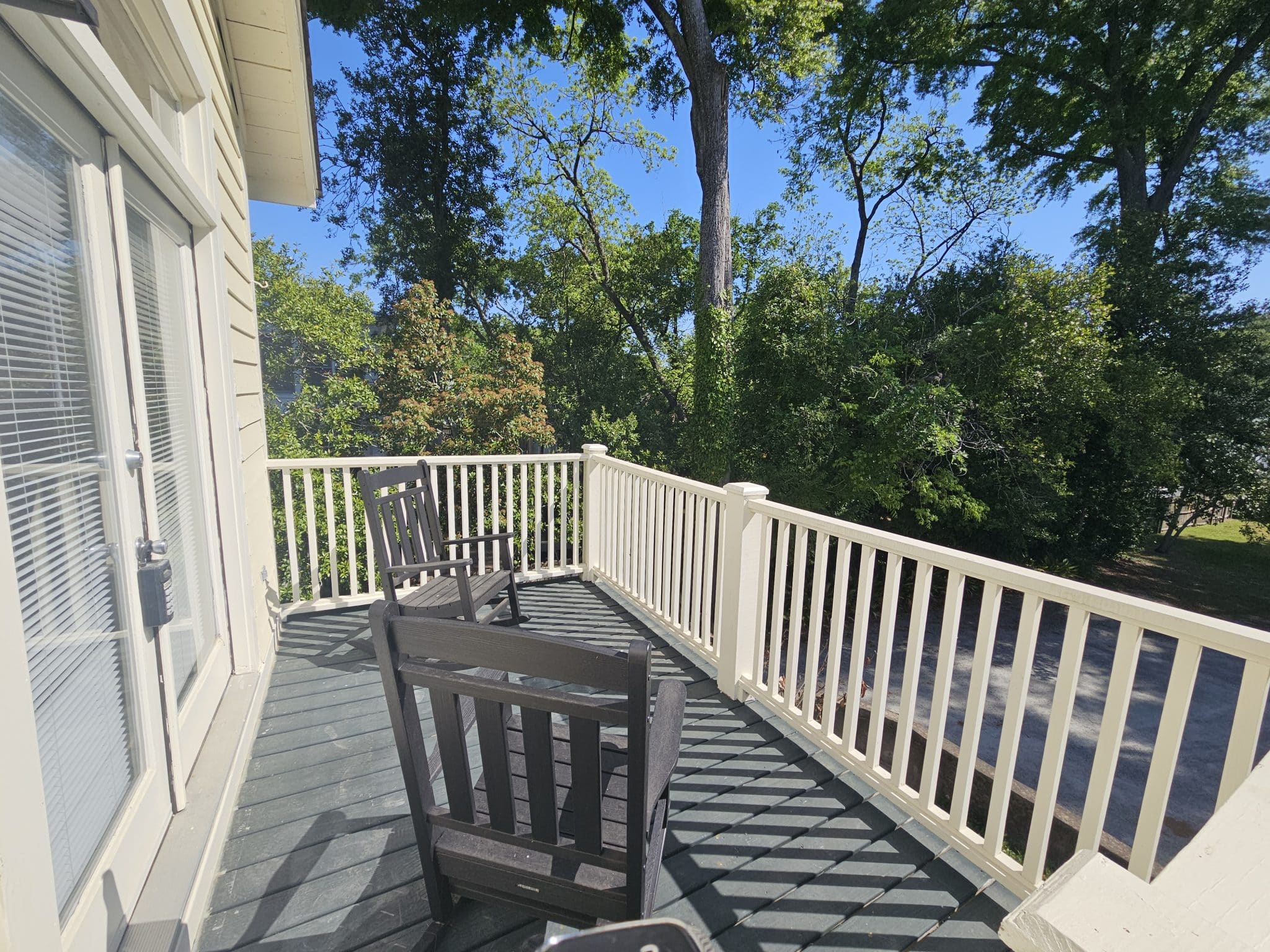 Historic Downtown Wilmington! Renovated 1800’s house with cute galley kitchen and stainless steel appliances. Brand new closet with built in shelving off the living area. Spacious deck overlooks the trees.